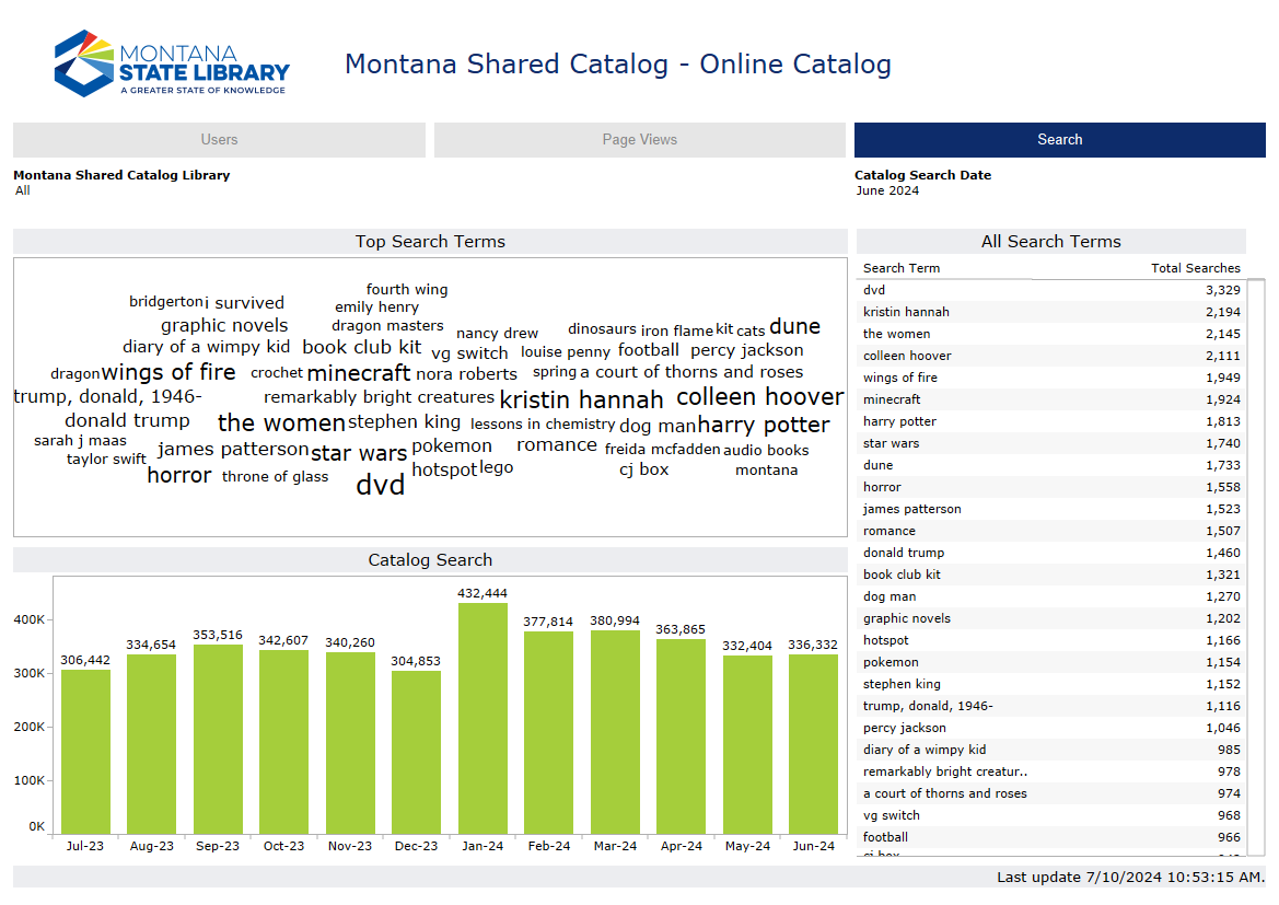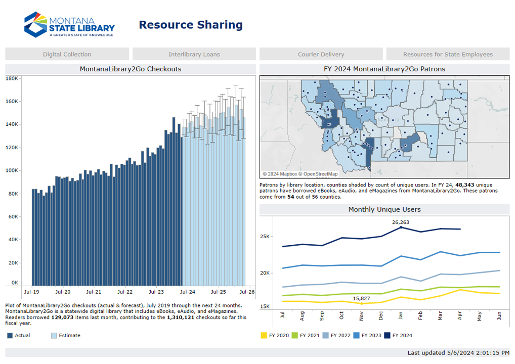 Montana State Library makes every effort to ensure that everyone may access the resources of our library including online resources through our website. For assistance with accessing dashboards, please contact the MSL support desk. When opening your case, select the support team Library Research & Evaluation, or contact the MSL Data Coordinator at 406.444.5458.