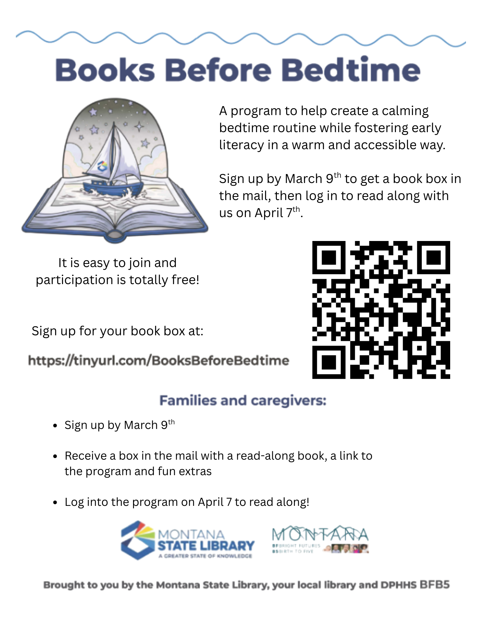 Books Before Bedtime is a free, virtual story time held once a month, designed to help create a calming bedtime routine, while fostering early literacy in a warm and accessible way.